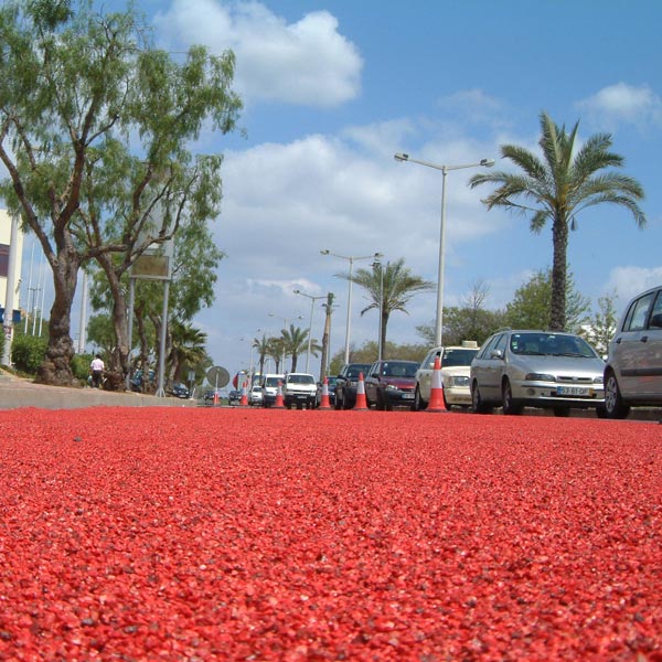 拜石采用陶瓷顆粒耐磨骨料。色彩豐富,通體一色,硬度高,耐磨而永不褪色,集高科技、耐用于一身。同時,色彩多樣的骨料,改變了傳統(tǒng)單調(diào)的道路狀況,為道路安全添加了色彩。